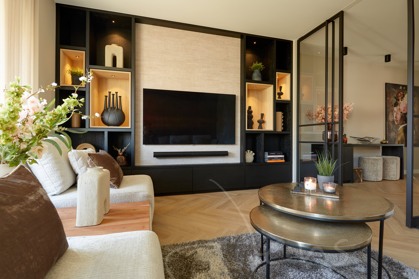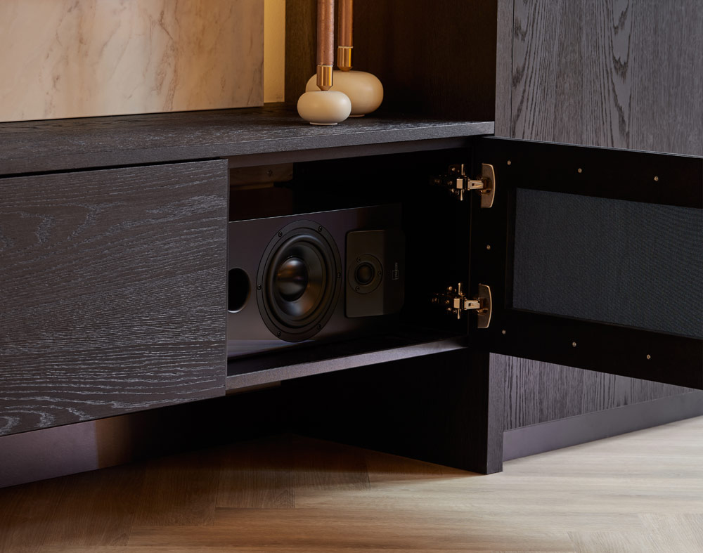 Een veelvoorkomende toepassing is een wandmeubel in combinatie met een integratie van haard en/of TV. Bedrading wordt keurig weggewerkt en speakers kunnen onzichtbaar worden verwerkt zonder het verlies van geluidskwaliteit.